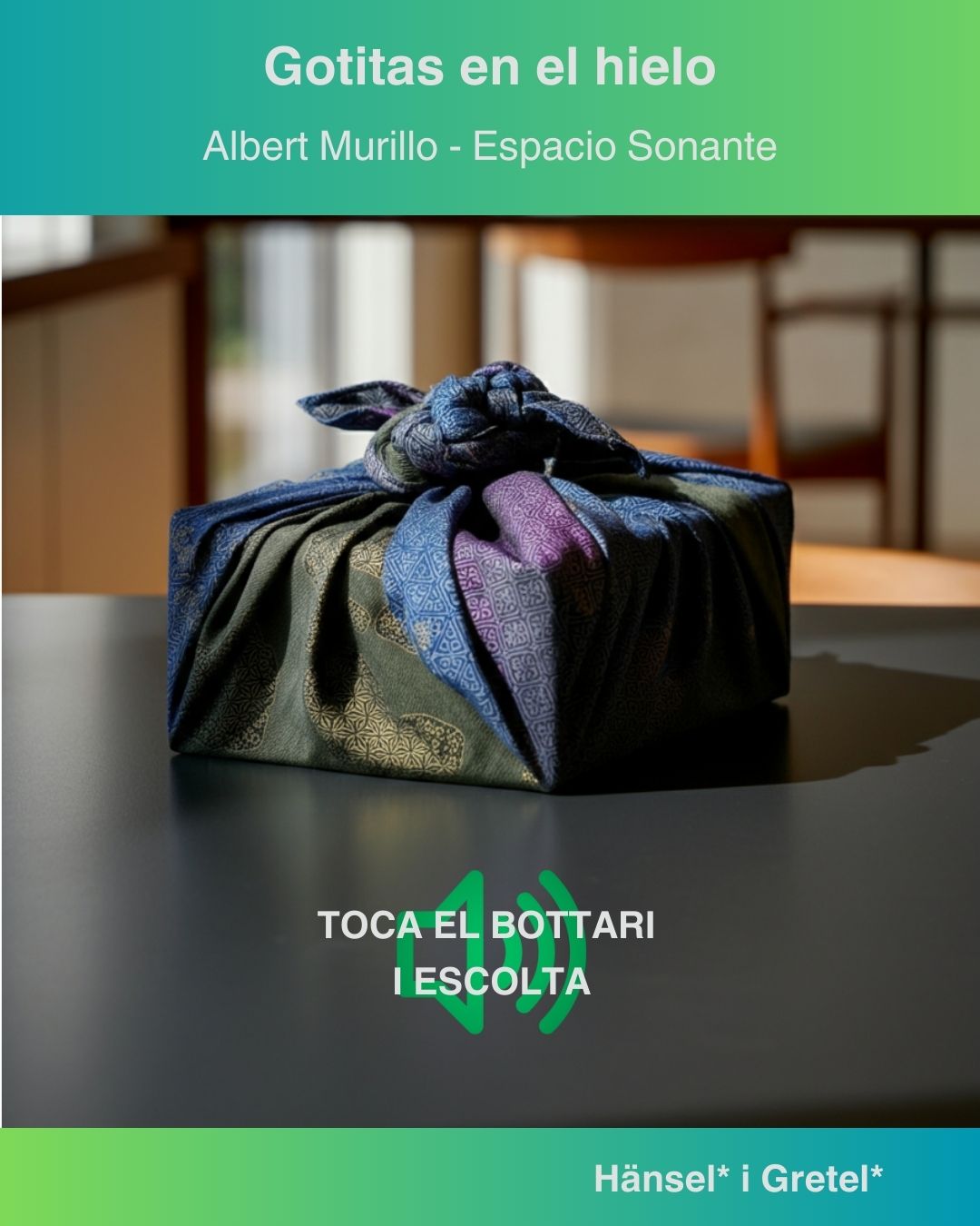 Un camino en el valle. Por la mañana. Un pequeño riachuelo medio helado que lo atraviesa. El agua pasa con dificultad y gota a gota. Y eso genera un sonido mínimo. La mínima expresión que sólo escuchas si pones la oreja. Los sonidos más minúsculos de la naturaleza.